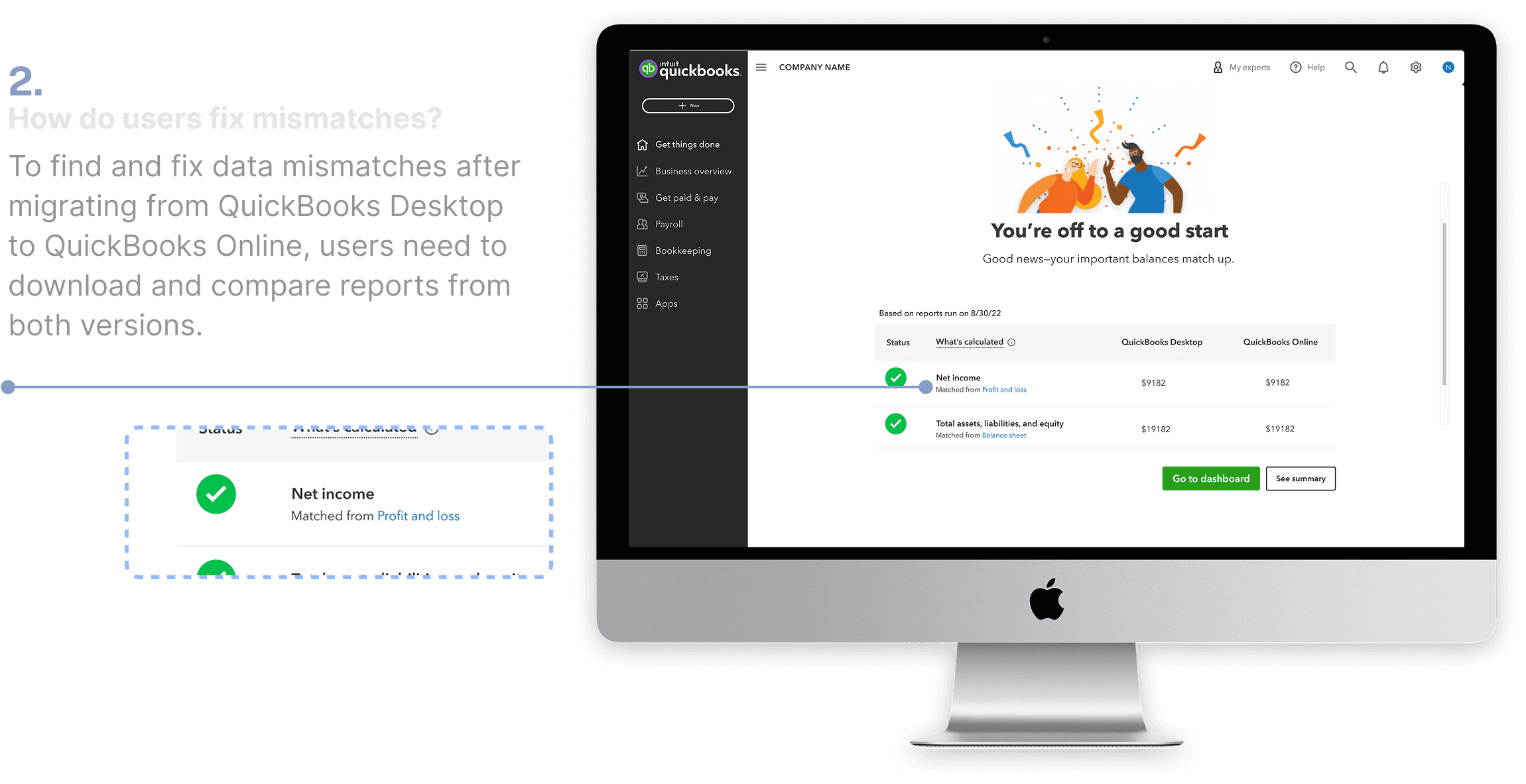 Users had hoped QuickBooks Online would resolve or suggest fixes for the mismatches, but the proposed post-migration hub only provides feedback.