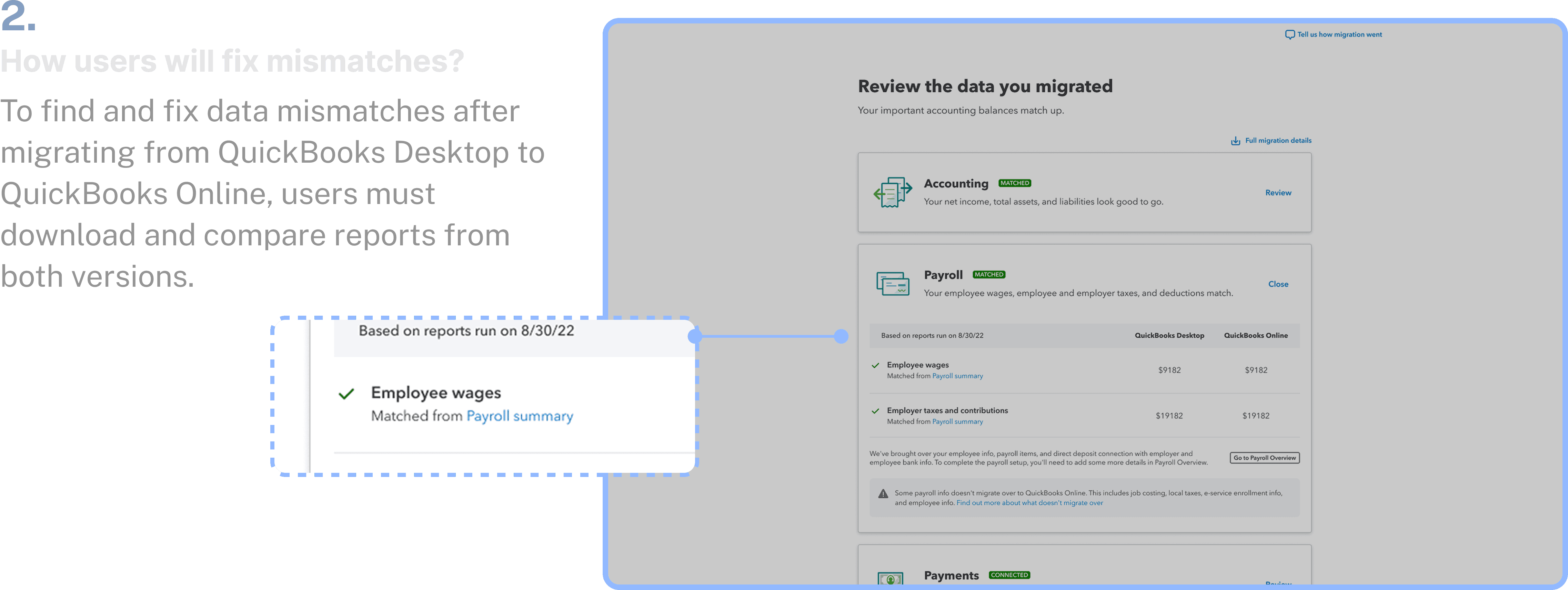 Users were pleased to see comparative values for identifying payroll data mismatches, but they also requested more accurate, detailed data beyond the hub's overview.